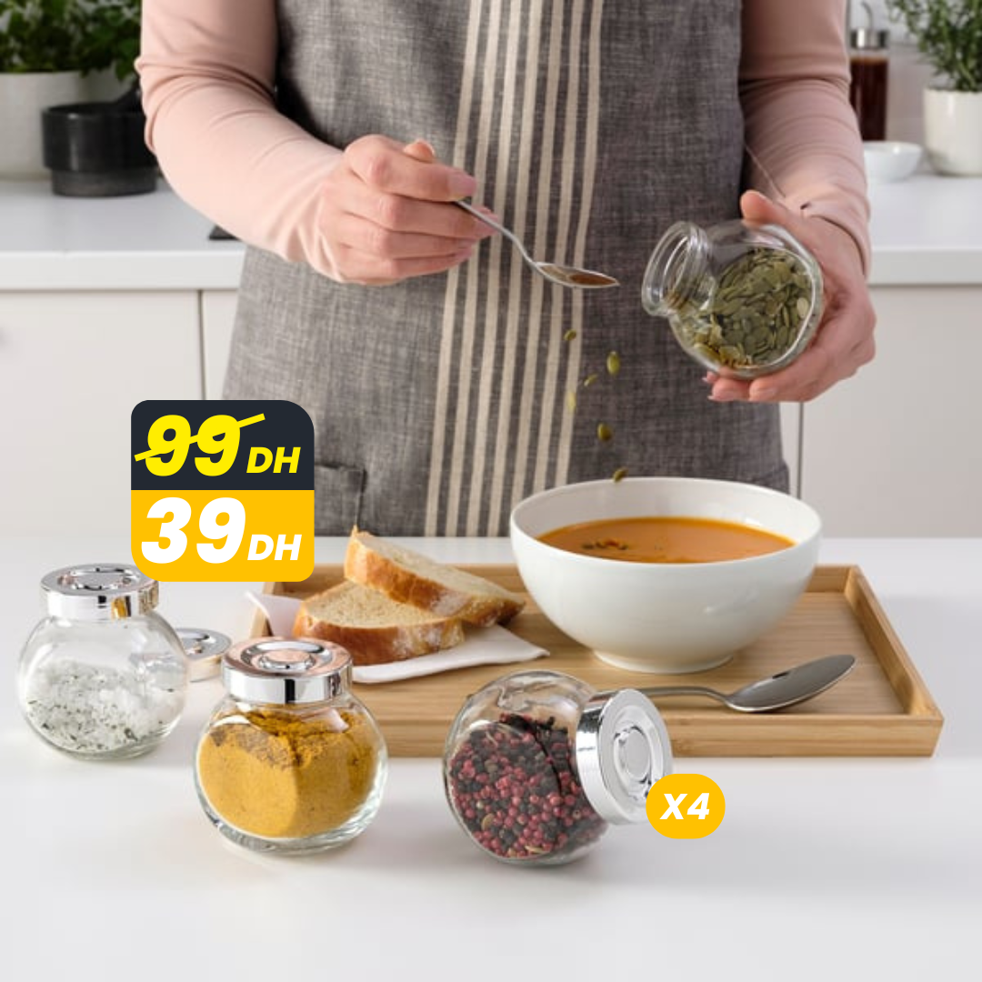 🍃 Lot de 4 Bocaux à Épices en Verre – 200 ml