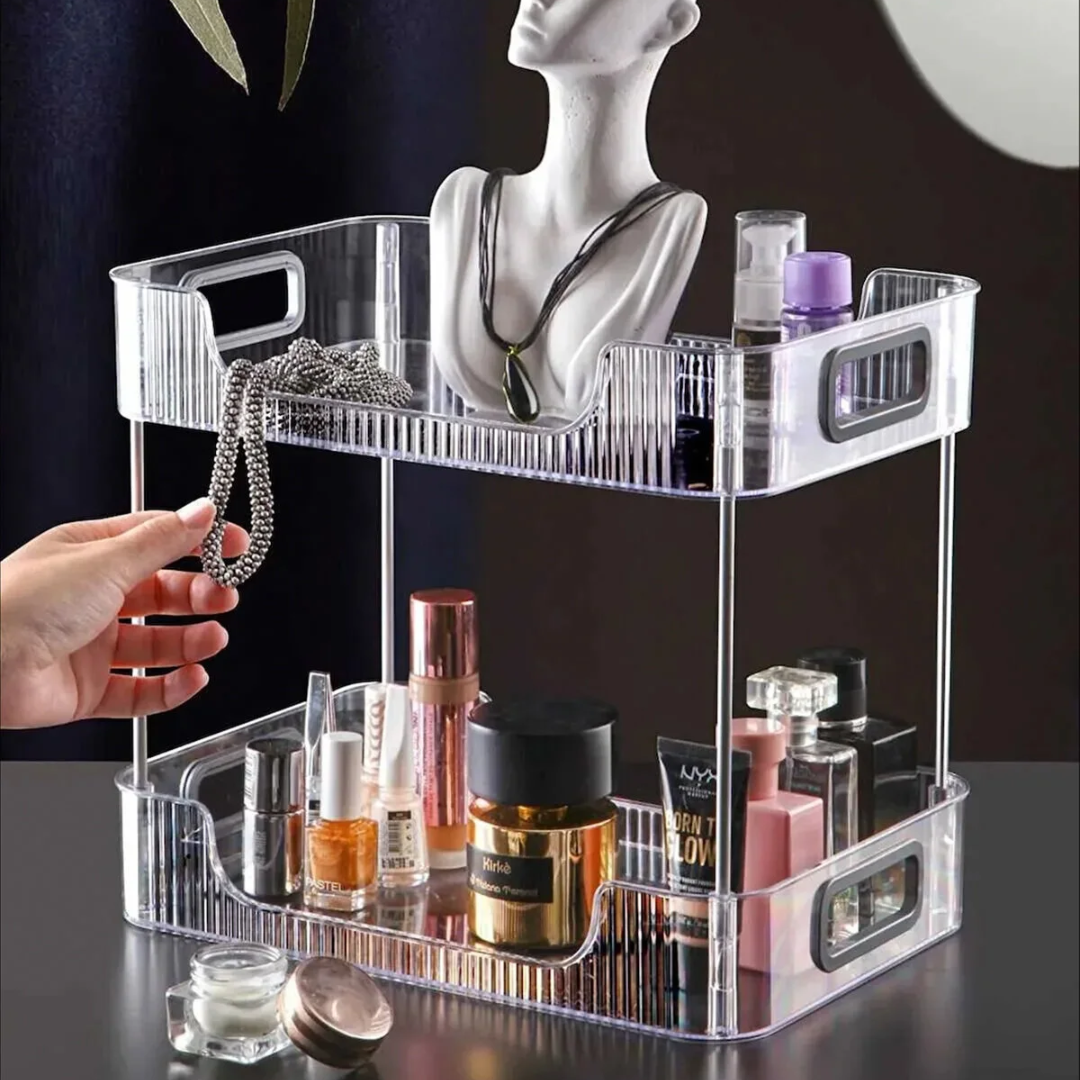 Gardez vos essentiels bien rangés avec cet organisateur à 2 niveaux. Idéal pour le maquillage, les fournitures de bureau ou les accessoires de salle de bain, il combine praticité et style pour un espace toujours ordonné.